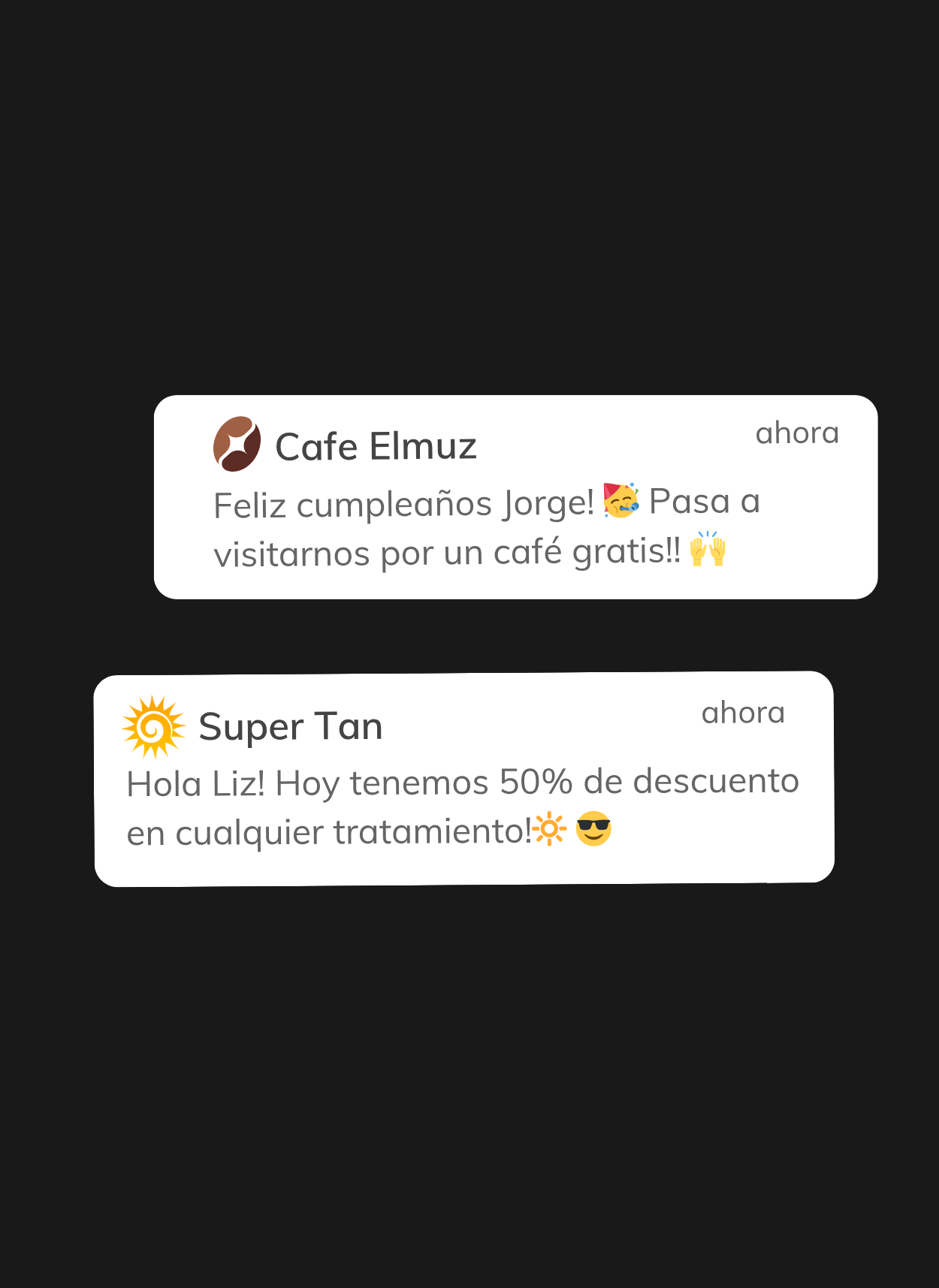Notificaciones, promociones, regalos y felicitaciones ilimitadas y... ¡Sin Costo!